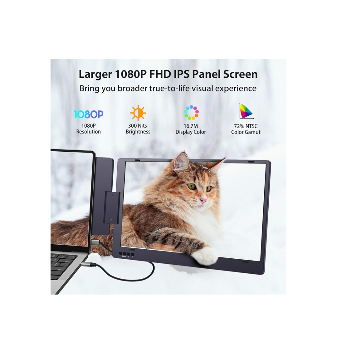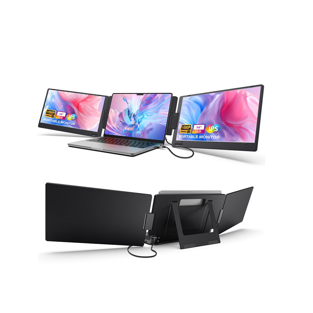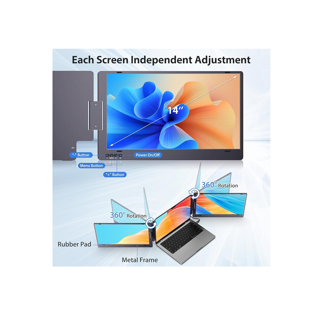 Triple Laptop Monitor Extender, 14″ 1080P FHD IPS Dual Portable External Screen, One Cable USB C Travel for 12-16” Laptop, 210°Rotation & Kickstand, (Space Gray).